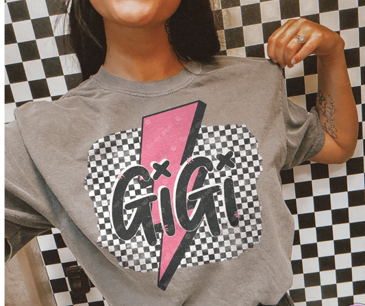 MAMA CHECKERED LIGHTNING BOLT GRAPHIC TEE