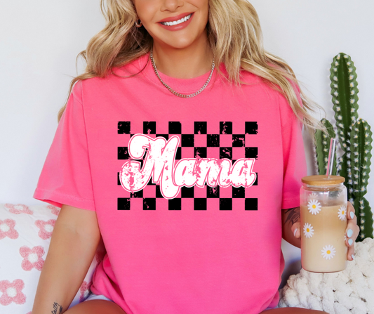 • MAMA CHECKERED RETRO GRAPHIC TEE